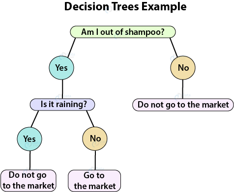 While in usage a bit different from the other mapping styles, decision trees are also a useful way to display information. Let’s take a look at the (very simple) example above. By walking through the steps from top to bottom, we take a sort of test each time until we reach the outcome. In this way, we can easily establish what steps to take – like going to the market for shampoo, since it ran out and it’s not raining right now.